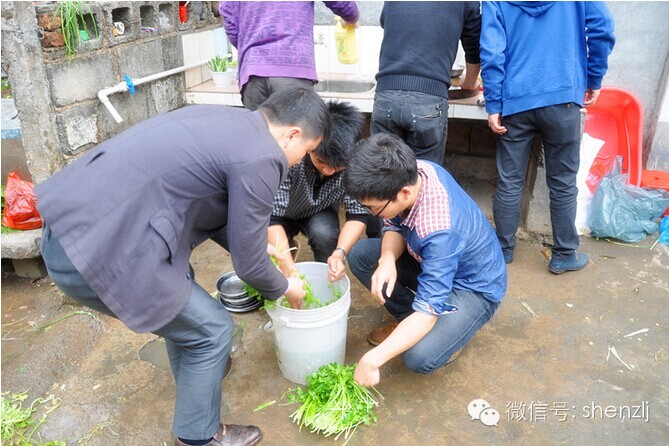 吕总身先士卒,很快就把火给点起来了!烧火队也很快集合完毕,进入状态,烧水洗碗煮饭。今天大家可有口福了,吃的可是柴火饭,这个在城里可是吃不到的哦!