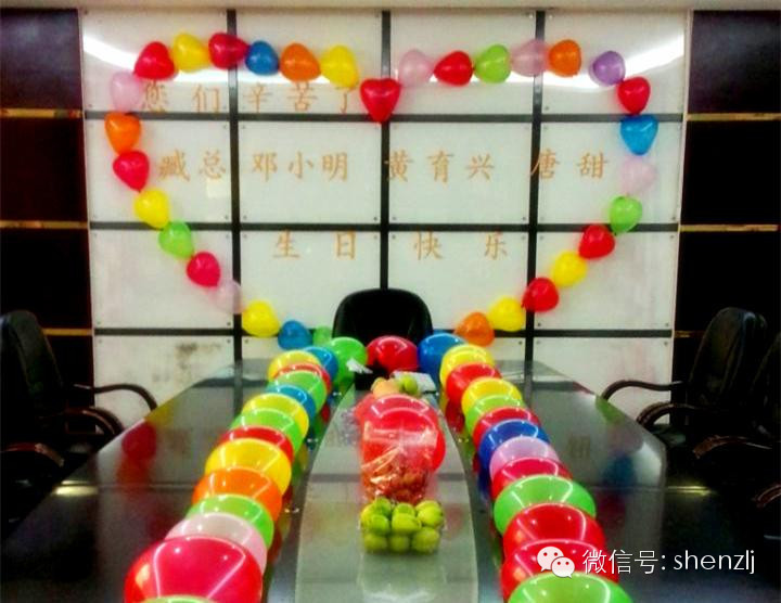又到了我们一月一次的生日会了,本月寿星有:总经理臧延怀、经营部邓小明、工程部唐甜、黄育兴。为了送给他们一个惊喜,在戴导的带领下,其他伙伴主动下班留下布置会场,噔